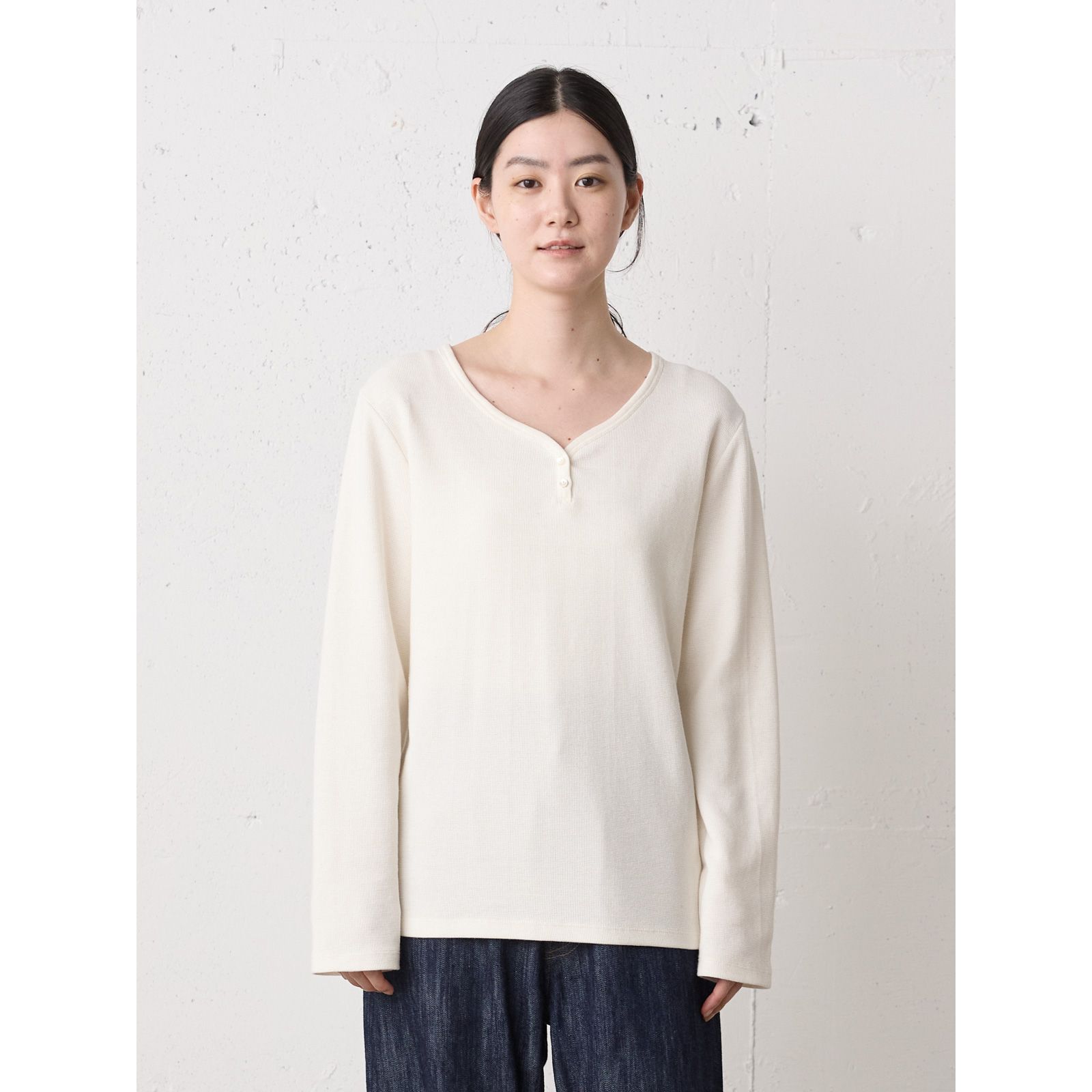 tシャツ 「at ease」ヘンリーネック ワッフル プルオーバー カットソー レディース