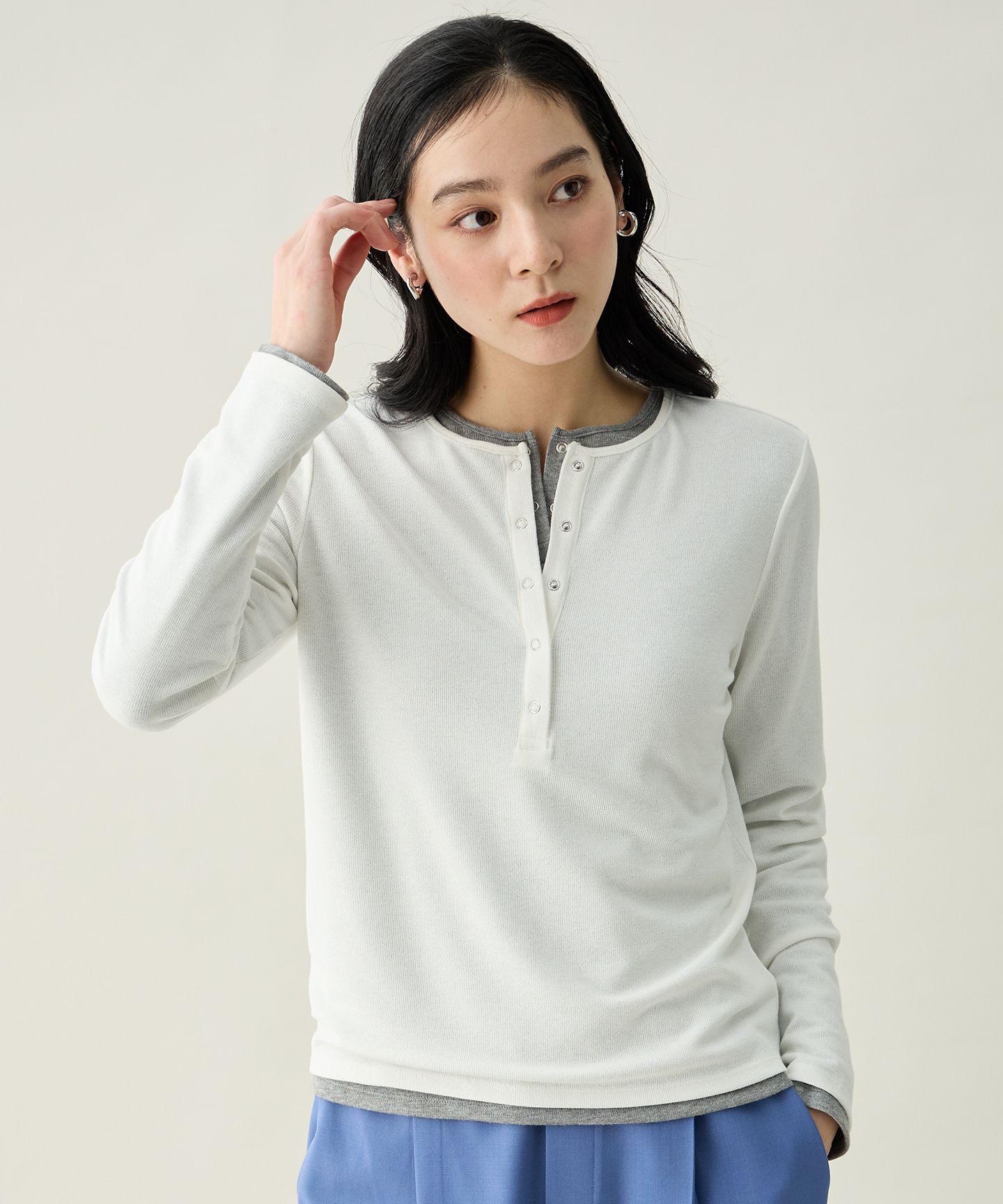 tシャツ レイヤード ライク ヘンリーネック プルオーバー レディース