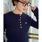 ニット セーター 限定展開 ワンポイント刺繍 ケーブルニット ヘンリーネック プルオーバー レディース