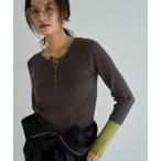 ニット セーター 配色ヘンリーネックリブニットプルオーバー レディース