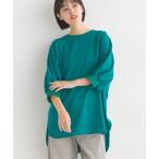 tシャツ 梨地バックヘンリーネックプルオーバー6分袖 レディース