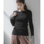 ニット セーター 限定展開 吸湿発熱 リブ ニット ボタン ヘンリーネック プルオーバー(配色) レディース