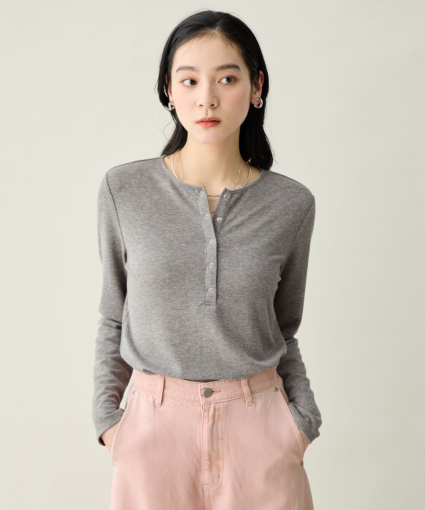 tシャツ シアーリブホックヘンリーネックプルオーバー レディース