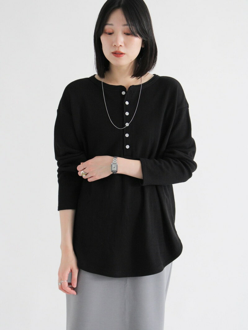 Keitto ケイット 配色 ワッフル ヘンリーネック プルオーバー Tシャツ カットソー レディース サーマル 無地 トップス クルーネック 大きいサイズ 大人 可愛い ナチュラル カジュアル 服 [M便 不可]