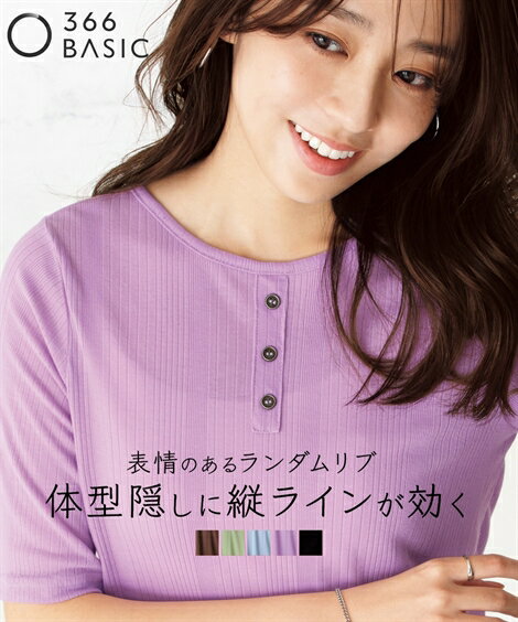 トップス ランダムリブカットソーヘンリーネック5分袖プルオーバー(薄手素材)<大きいサイズ有>レディース 大きいサイズ 20代 30代 40代 50代 春 夏 秋 お出かけ シンプル ベーシック 体型カバー スマイルランド smileland