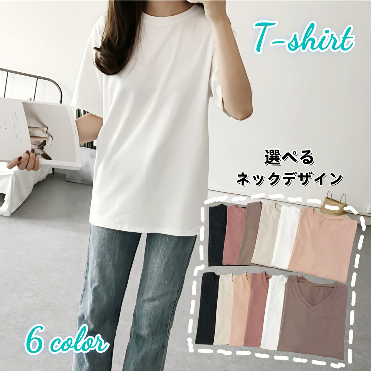 送料無料 Tシャツ カットソー 半袖 レディース トップス ラウンドネック Vネック プルオーバー 無地 ソリッドカラー 婦人服 カジュアル 定番 着回し ラフ 外出 お出掛け 部屋着 リラックス 女性用 M L XL