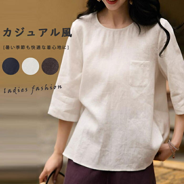 七分袖 シャツ 七分袖 シャツ 半袖 レディース シャツブラウス 7分袖ブラウス 無地ブラウス シンプル ラウンドネック ショート丈 トップス 半袖ブラウス カジュアル ボリェーム袖 プルオーバー カジュアル ゆったり 柔らかい 大人 無地 体型カバー夏 薄手