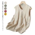 ニットベスト レディース ベスト サイドボタン 丸首 ケーブル編み リブ編み チョッキ プルオーバー トップス ゆったり ラウンドネック Uネック お