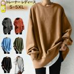 ラウンドネックオーバーサイズプルオーバー レディース 長袖 ゆったり 体型カバー シンプル カジュアル 無地 きれいめ 秋冬 春 防寒 通勤 可愛い