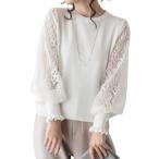 ブラウス レディース 女性 トップス 長袖 パフスリーブ 丸首 ラウンドネック クルーネック プルオーバー 無地 ブルー オフホワイト シンプル カジ