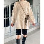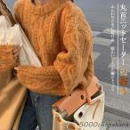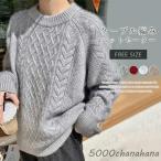 ニットセーター レディース セーター プルオーバー ニット 低身長 ラウンドネック 丸首 厚手 ゲーブル編み ニットトップス ルーズフィット ゆったり あったか