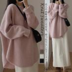 ふわふわ ニット セーター 長袖 レディース 秋冬 丸首 クルーネック ラウンドヘム プルオーバー チュニック 大きいサイズ オーバーサイズ ドロップショルダー