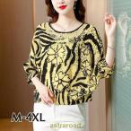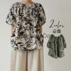 ブラウス 半袖 ラウンドネック バルーンスリーブ プルオーバー トップス レディース 女性 婦人服 ボタニカル柄 花柄 かわいい おしゃれ