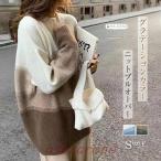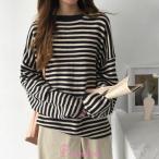 ニット ボーダー ボーダーニット プルオーバー トップス 長袖 ルーズ ラウンドネック クルーネック カジュアル シンプル 秋 冬 レディース おしゃ