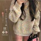 ニットセーター ループヤーン ニット プルオーバー レディース トップス セーター クルーネック 長袖 ラウンドネック 丸首 厚手 無地 カジュアル シンプル あ