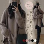 ニット レディース 長袖 セーター 丸ネック ラウンドカット 体型カバー プルオーバー ゆったり 秋冬 ミドル丈 カジュアル 通勤 おしゃれ 可愛い