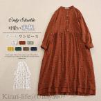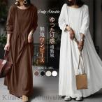ワンピース ワンピ きれいめ ロングワンピース 綿麻 コットン リネン ロングワンピ ロング 春 秋 aライン ラウンドネック プルオーバー 綿 コットンリネン 長袖