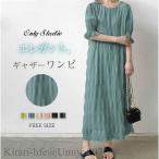 ワンピース ギャザーワンピース 新作 無地 七分袖 ティアードワンピース プルオーバー ラウンドネック シフォン ロング ワンピ ゆったり フリル ギャザー エレ