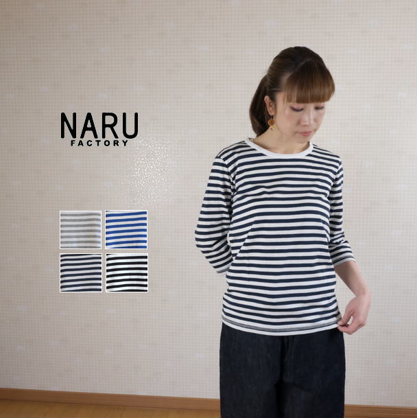 【SALE20%OFF】NARU ナル 40/2天竺ボーダー 7分袖クルーネックプルオーバー 618010服 ナチュラル
