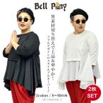【2枚セット】 異素材切り替えプルオーバー フリルTシャツ レディース トップス 春 夏 秋 七分袖 無地 大きめ ゆったり Bell Pony ベルポニー