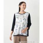 Leilian PLUS HOUSE / レリアンプラスハウス プリント切替七分袖ニットプルオーバー【Leilian WHITE LABEL】