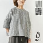 10%OFFクーポン ブラウス レディース NARU ナル 40 サッカー ギンガム / ストライプ ワイド プルオーバー ブラウス 670851 春 夏 カットソー 五分袖 七分袖 半袖