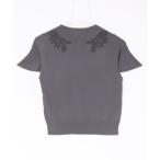 ニット セーター ネック刺繍半袖ニットプルオーバー レディース