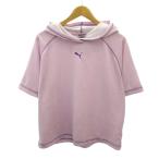 プーマ PUMA 美品 プルオーバー パーカー フーディー ピューマ ロゴ 刺繍 半袖 L 紫 パープル 0213 レディース