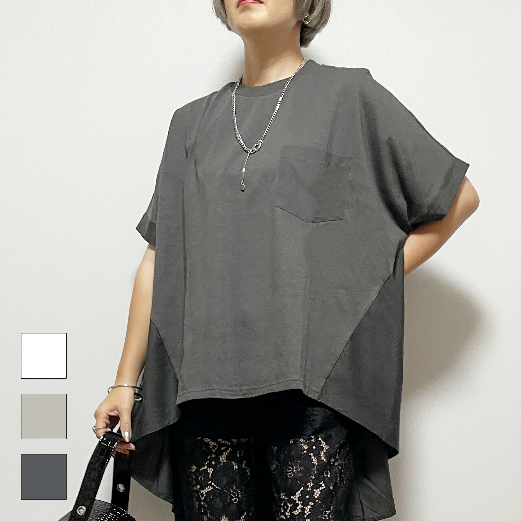 tシャツ 限定展開 異素材 ドッキング バルーン 半袖 プルオーバー レディース