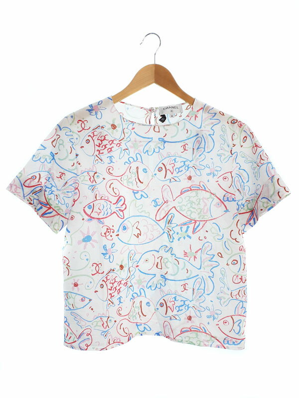 【CHANEL】シャネル『魚柄 半袖プルオーバーシャツ size36』P78845V70970 レディース カットソー 1週間保証【中古】