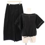 セオリー Theory セットアップ ワイドパンツ ジップフライ タック シャツ ブラウス プルオーバー ショート丈 半袖 ボートネック 2 S 黒