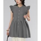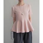 ニット セーター フロントフリルペプラム半袖ニットプルオーバー レディース