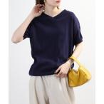 tシャツ Vネック ドルマン 綿ニット プルオーバー 半袖 レディース