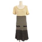 シャネル CHANEL ニット ワンピース ひざ丈 半袖 ココマークボタン プルオーバー MP485 P4336K04401 紺 ベージュ ネイビー 38 レディース