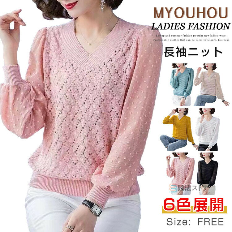 メッシュニット レディース トップス ニット Vネック サマーニット 透け感ニット セーター 長袖 透け 薄手 きれいめ 無地 春 夏 オフィスカジュアル デイリー プルオーバー 母 ママ ライトニット