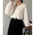 ニット セーター Vネックバルーンスリーブロングシャギーニットプルオーバー レディース