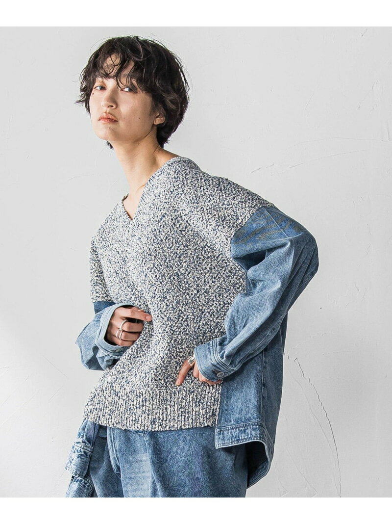 【SALE/10%OFF】デニムドッキングVネックニットプルオーバー≪洗濯機で洗える≫ MAYSON GREY メイソングレイ トップス ニット ブルー ホワイト【RBA_E】【送料無料】[Rakuten Fashion]