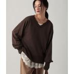tシャツ リブ見えニットソーVネックプルオーバー レディース