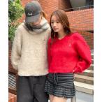 ニット セーター 「UNISEX」ALAND/AロゴシャギーVネックプルオーバー レディース メンズ