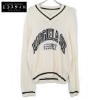 MM6 エムエムシックス 25SS SH0HN0002 ホワイト ロゴデザイン Vネックプルオーバーニット ホワイト S トップス コットン レディース 中古