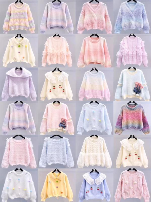 ニット レディース 長袖 Vネック プルオーバー 厚手 ゆったり ゆるかわ 撞色 切り替え トップス 秋冬 かわいい 普段使い 部屋着(x300)