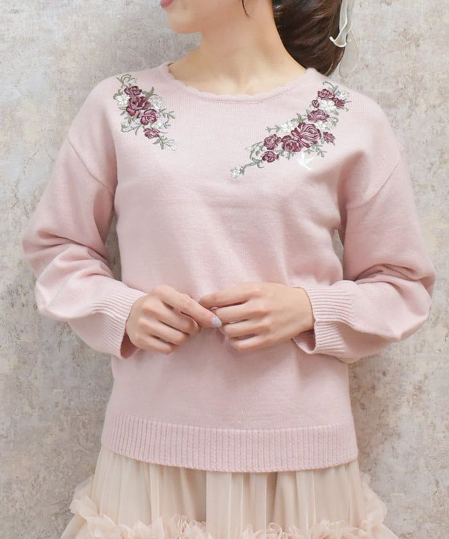 【SALE/12%OFF】axes femme ローズ*鳥刺繍ニットプルオーバー アクシーズファム トップス ニット ピンク ホワイト ネイビー