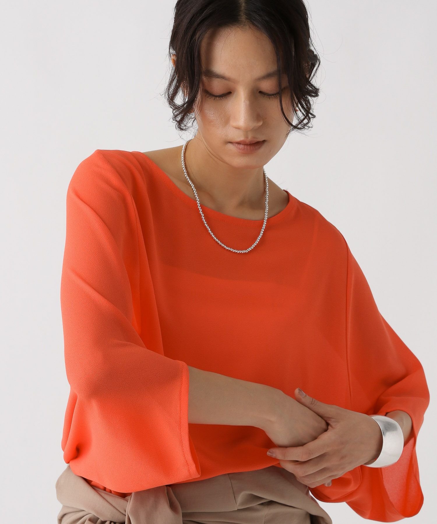 【SALE/40%OFF】Elura 袖スリットドルマンプルオーバー/590648 エルーラ トップス シャツ・ブラウス ホワイト ブラック オレンジ