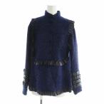 シャネル CHANEL ジャケット プルオーバー ラメ ツイード 長袖 切替 ココマークボタン ハイネック ロゴ フリル 絹 シルク 34 紺 P47128