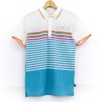 PUMA プーマ ポロシャツ 半袖 ボーダー スポーツウエア トップス レディース Mサイズ ホワイト×ブルー×オレンジ×ピンク 【中古】