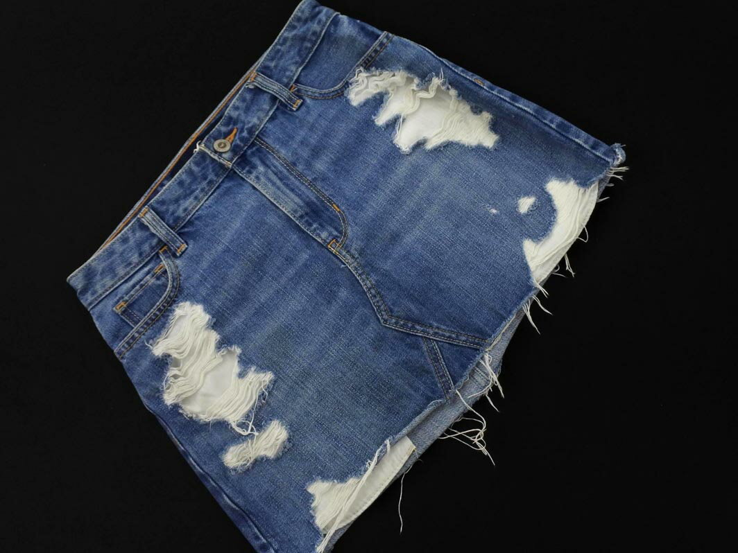 Hollister ホリスター USED加工 ダメージ加工 カットオフ ミニ デニムスカート size27/紺 ■◆ ☆ feb4 レディース【USED】【中古】【古着】【ブランド古着買取・販売ABJ】