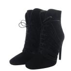 ボッテガヴェネタ BOTTEGA VENETA ブーツ ショート ピンヒール スクエアトゥ レースアップ スエード 39 ブラック /YO14 ■SH レディース