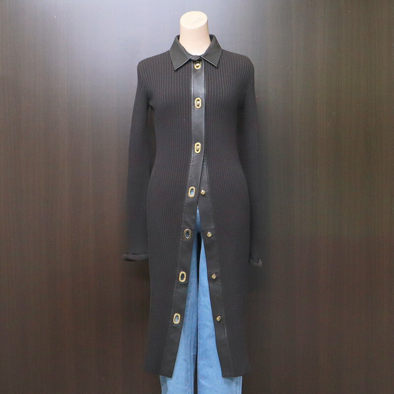 【BOTTEGA VENETA】ボッテガヴェネタ ロング・カーディガン 629363 ブラウン×ゴールド金具 ラムスキン×ウール #XXS【中古】【代金引換不可】/br5416ik