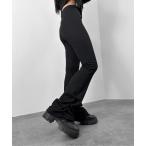 パンツ 「LVEU.」ギャザーフレアリブパンツ / ボトムス パンツ リブ ストレッチ ギャザー フレア タイト レイヤード 無地 ブラック ZOZO