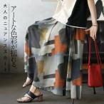 スカート ボトムス フレア シアー アートな色彩が揺れる大人のニュアンススカート 幾何学模様 ゆったり 総ゴム マルチカラー 春OTONA 40代 50代 60代